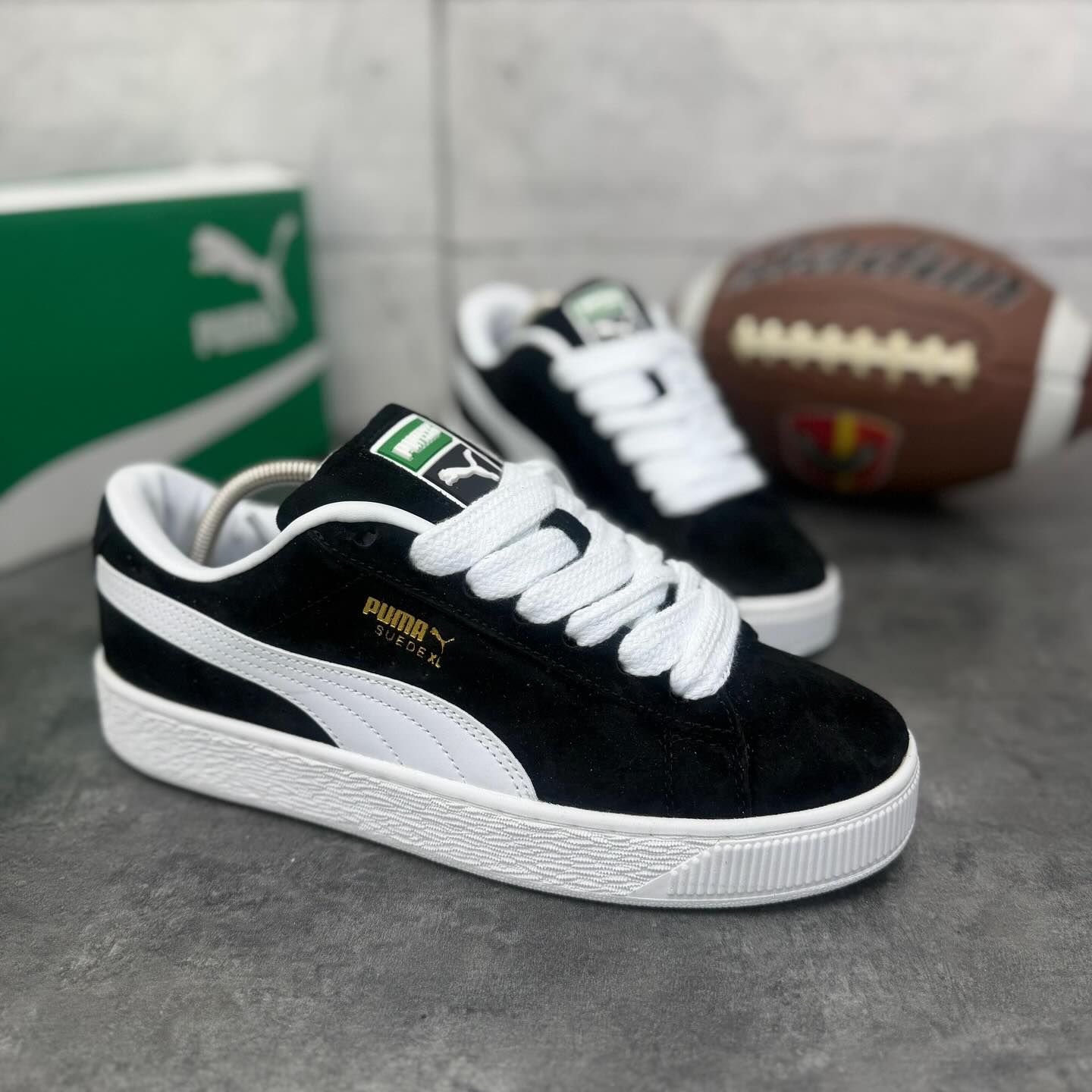 The most striking features are the extra-thick padded tongue and the super-wide cotton laces, which give the shoe a distinct retro-skate profile. The signature white Form strip stays true to tradition, providing a sharp contrast against the deep black suede. Finished with a durable textured rubber midsole and a comfortable cushioned interior, the Suede XL is built for those who want the classic Puma look with a much more substantial, modern presence. It’s a perfect bridge between 60s heritage and Y2K streetwear trends.