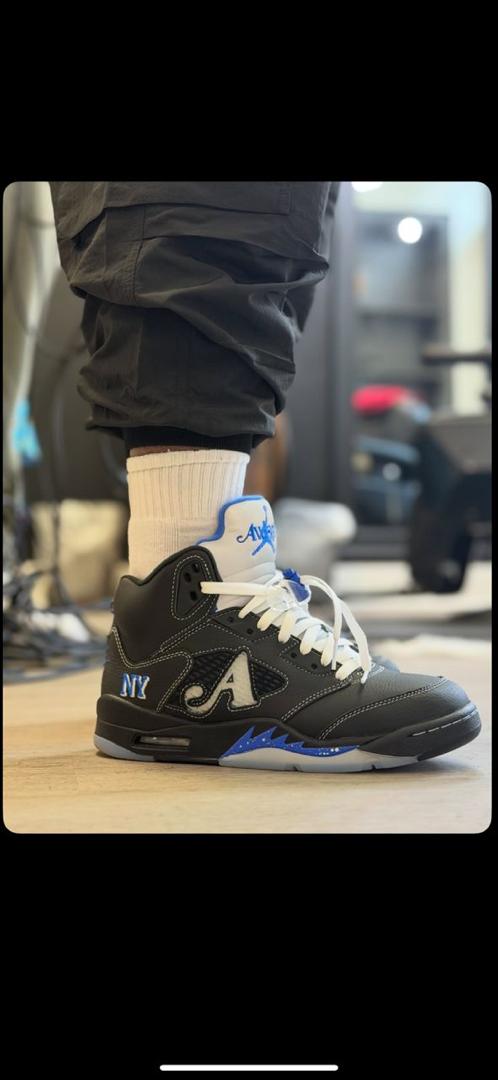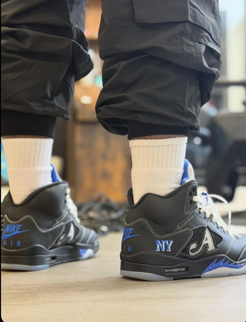 Elevate your sneaker rotation with the Awake NY x Air Jordan 5 Retro Racer Blue in a sleek black colorway. This limited-edition collaboration fuses Jordan Brand’s iconic design with Awake NYs contemporary streetwear influence, featuring premium materials, bold blue accents, and signature detailing. Designed for comfort, durability, and exclusivity, this sneaker is a must-have for collectors and fashion-forward men.