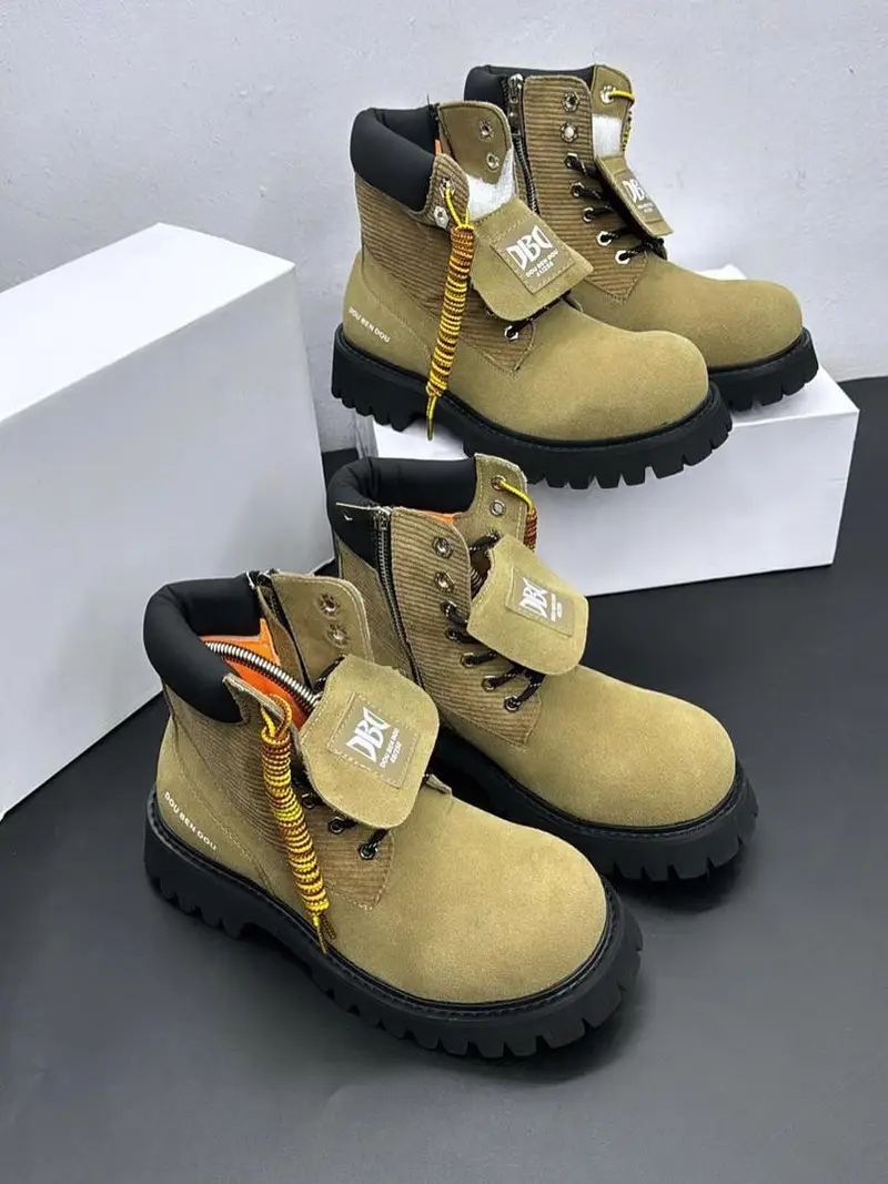 Discover the rugged style of Dou Ben Dou with these versatile boots. Featuring a durable design, a comfortable padded collar, and a convenient side zipper, these boots are perfect for anyone seeking a blend of urban fashion and practical functionality.