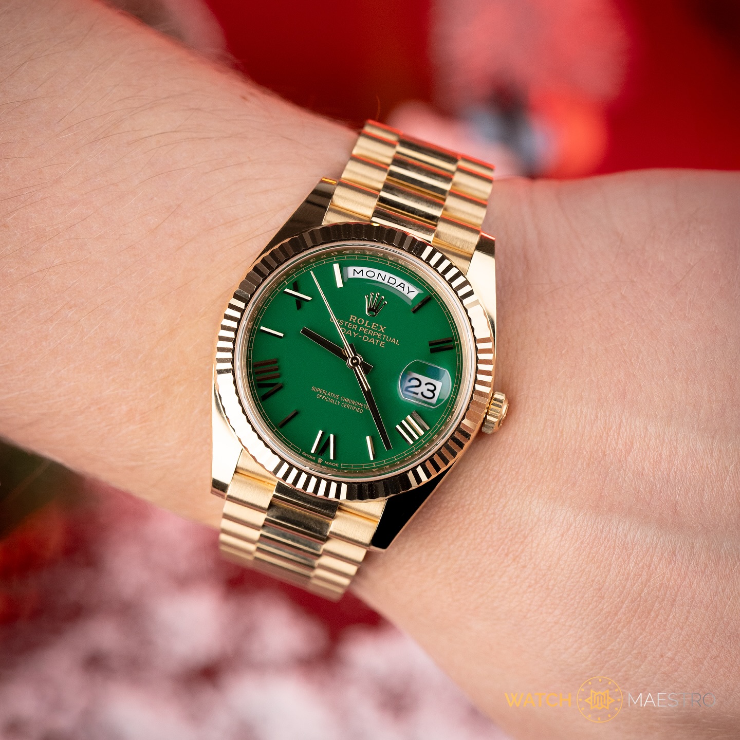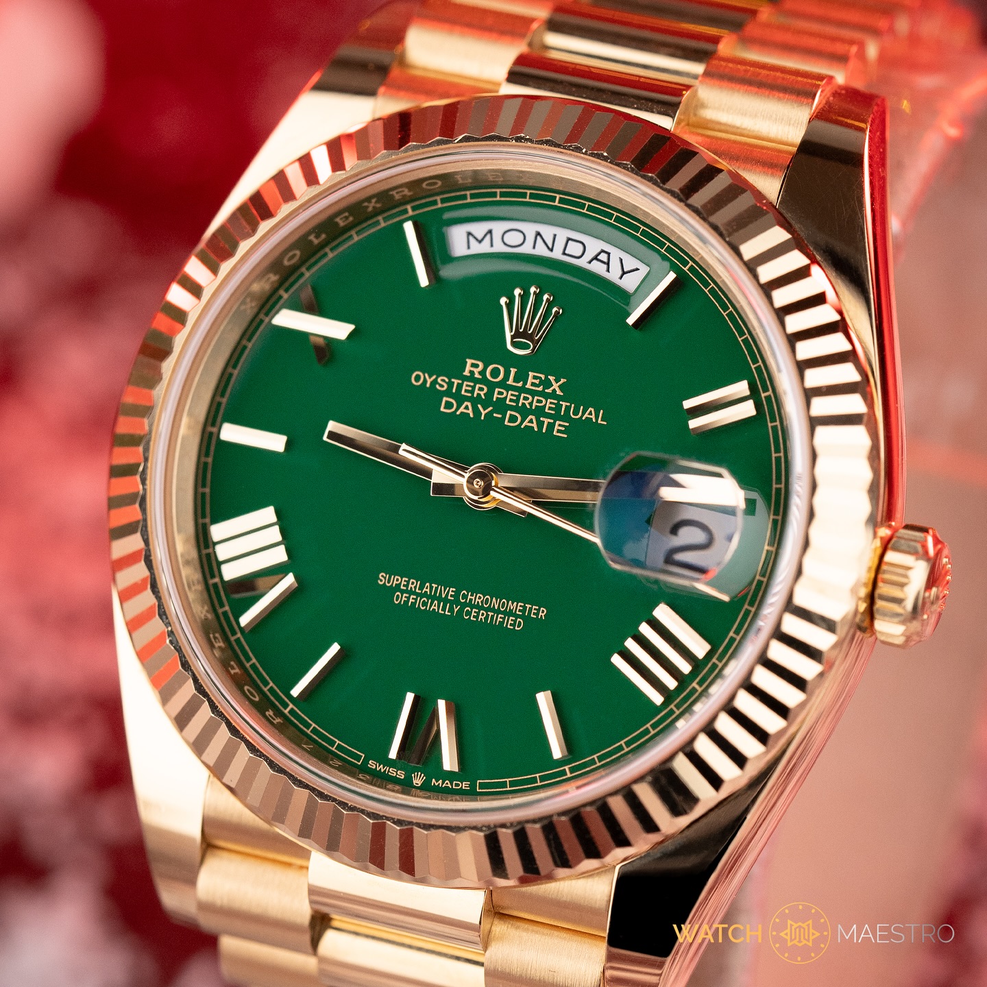 Dial: Green (can be “green ombre,” “olive green,” or “bright green” depending on the specific model and year)