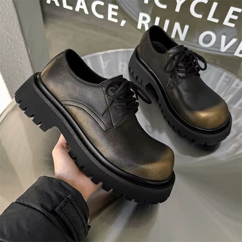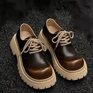 A bold, subverted take on the classic formal shoe. The Balenciaga Strike Derby features a heavy-duty, exaggerated lug sole and a distressed matte leather upper, making it the ultimate statement piece for a modern, utilitarian wardrobe.