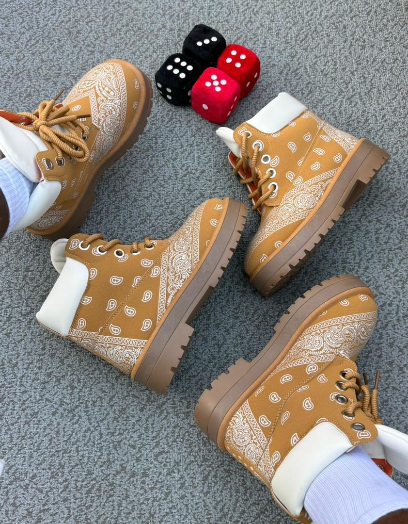 Unleash bold street-style energy with these Bandana-Print Suede Boots, crafted with a chunky sole and low-profile silhouette. Featuring a unique patterned suede finish and rugged design, these boots offer the perfect blend of comfort, durability, and standout urban fashion. Ideal for streetwear lovers, creatives, and trendsetters who want footwear that makes a statement.