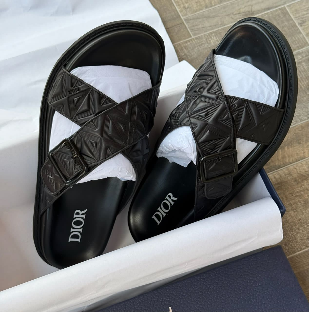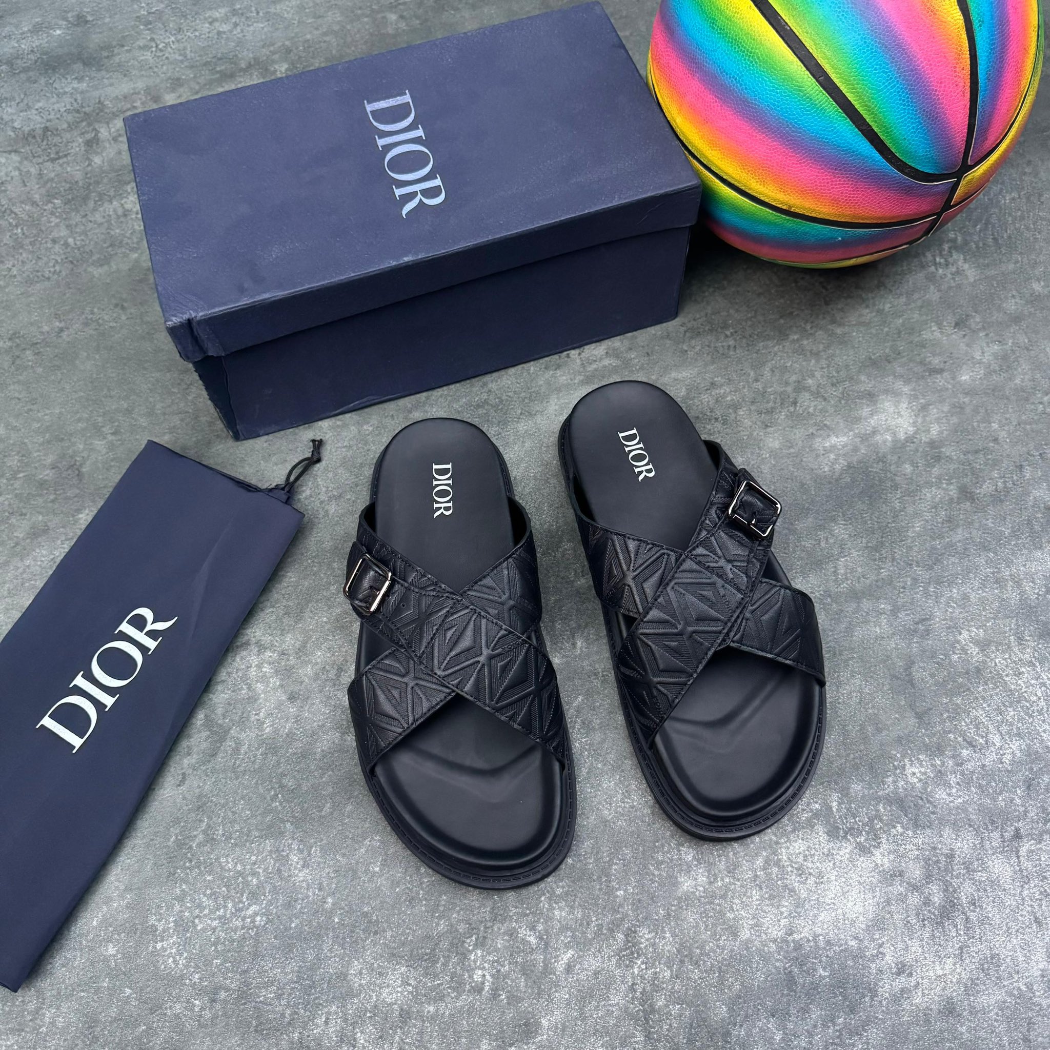 A refined take on the classic slide, the Dior Alias sandal features crossed straps crafted in black canvas with the architectural CD Diamond motif. Finished with a comfortable leather insole and a durable rubber sole, it’s the ultimate blend of luxury and laid-back style.