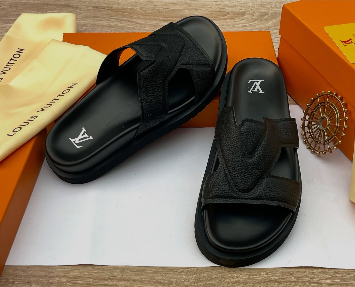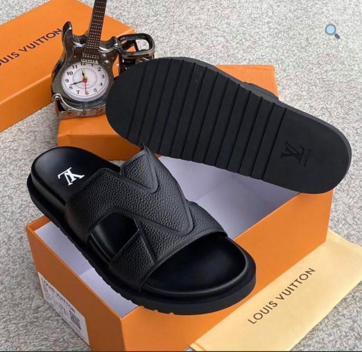 Elevate your leisure style with the LV Oasis Mule, a refined take on the classic slide. Crafted from premium black grained calf leather, these sandals feature an iconic interlaced strap design that forms a graphic "V" signature. With a comfortable anatomic footbed and a lightweight micro outsole, they offer the perfect blend of high-fashion aesthetics and effortless summer comfort.
