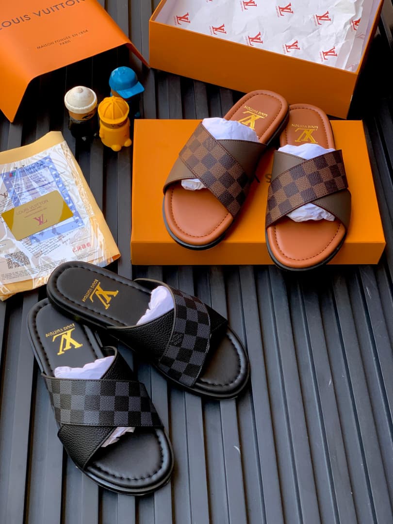 Crafted for the modern man who values both style and substance, these Louis Vuitton sandals are a testament to the Maison’s unparalleled craftsmanship. The design features a contemporary criss-cross strap architecture: one strap showcases the signature masculine Damier Graphite pattern, while the other is rendered in rich, pebbled black leather for a refined textural contrast.
