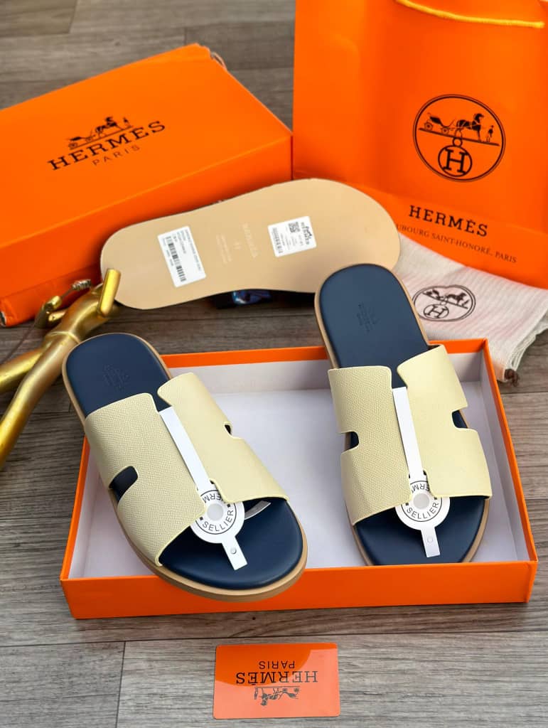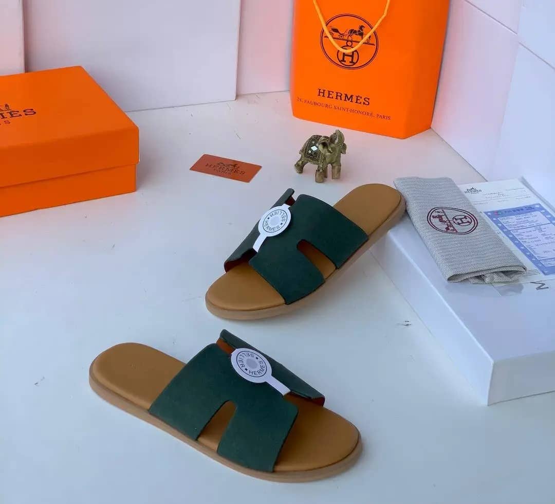 Step into effortless luxury with these Hermès Izmir Green Leather Slippers — a refined blend of iconic design and everyday comfort. Crafted from premium black leather, these sandals feature the signature H-cut design that defines the timeless elegance of the Hermès Izmir style.